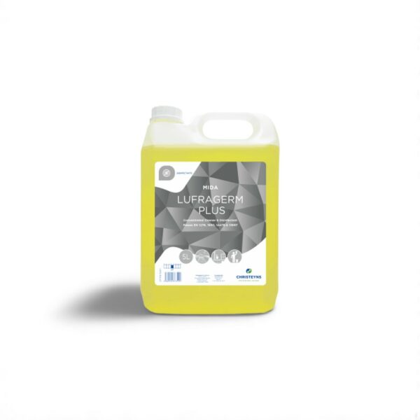 Mida Lufragerm Plus is an odourless, neutral sanitiser that is ideally suited to daily disinfection. Effective against Staphylococcus Aureus, E. Coli, Salmonella, Pseudomonas Aeruginosa and a range of yeasts, fungal spores and enveloped viruses.